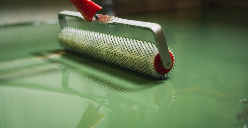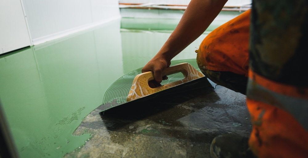 Izlivanje epoksidnog poda vrši se nazubljenim gletericama, a zaptivni premazi pomoću valjka.
