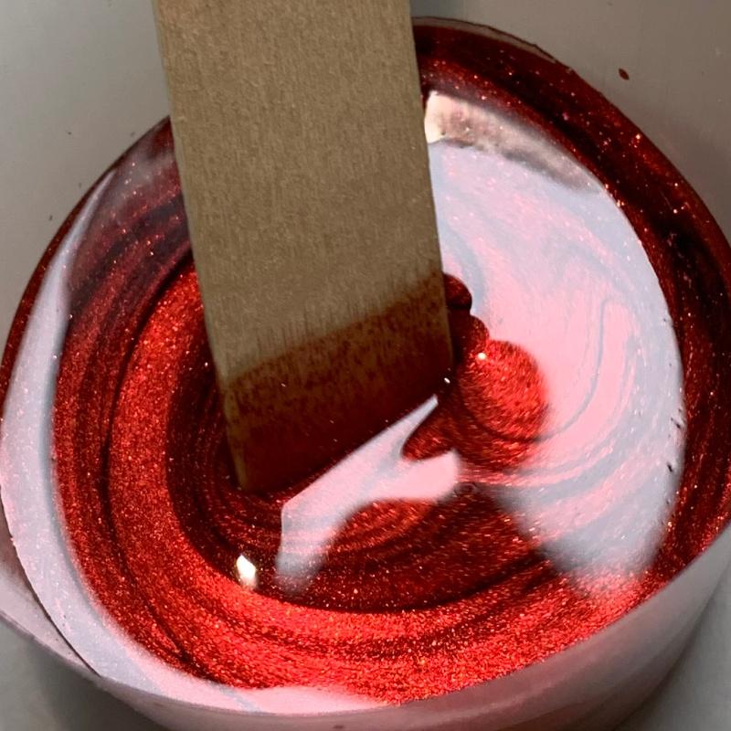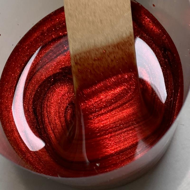 Pigment za epoksi smolu u karmin crvenoj boji za metalik efekat u sistemu smola kristalne prozirnosti.