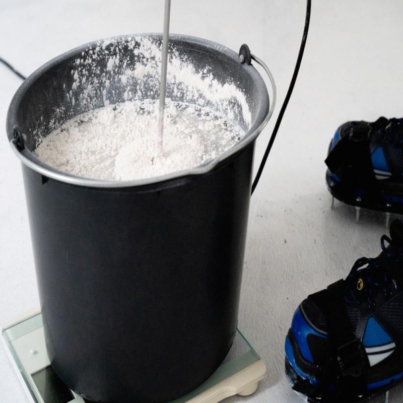 2. Mešanje smole: • Polako ulijte hardener u smolu u odgovarajućem odnosu. • Upotrebite uređaj za mešanje. Počnite sa niskom brzinom, kako biste izbegli stvaranje mehurića vazduha. Zatim, po potrebi, povećavajte brzinu. • Mešajte oko 3-5 minuta, dok ne postignete potpunu homogenizaciju smole. Zbog manjeg propelera, možda ćete morati da budete strpljivi i češće proveravate da li su svi delovi smole dobro pomešani. • Povremeno podižite mešač uz ivice posude kako biste osigurali da se sve komponente smole i hardenera ravnomerno pomešaju.