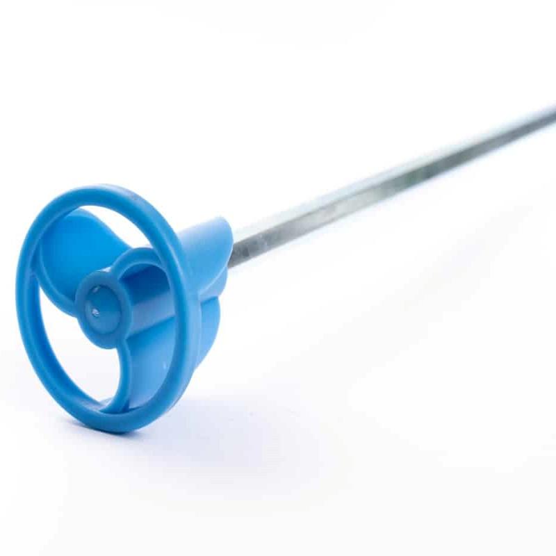 Mešač za boje 80 x 350mm sa plastičnom lopaticom Pogodno za ukupnu količinu smole i učvršćivača do 5kg Plastična mrežasta lopatica (Ø 75 mm) i čelična šipka Ukupna dužina: 400 mm