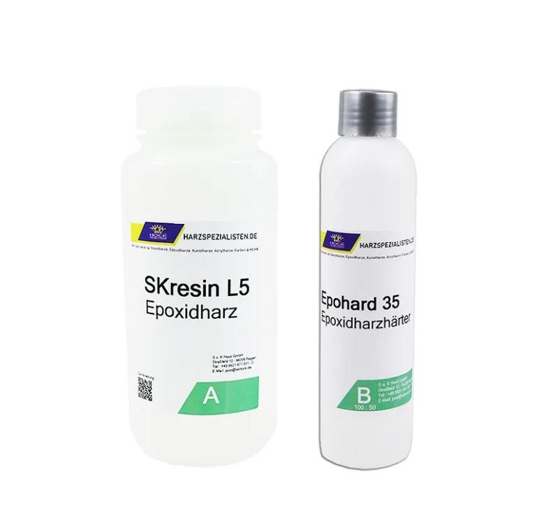 Epoksi smola SKresin L50T-35 idealna je za laminaciju, lepljenje drveta, metala, kamena, stiropora, gipsa i slično.