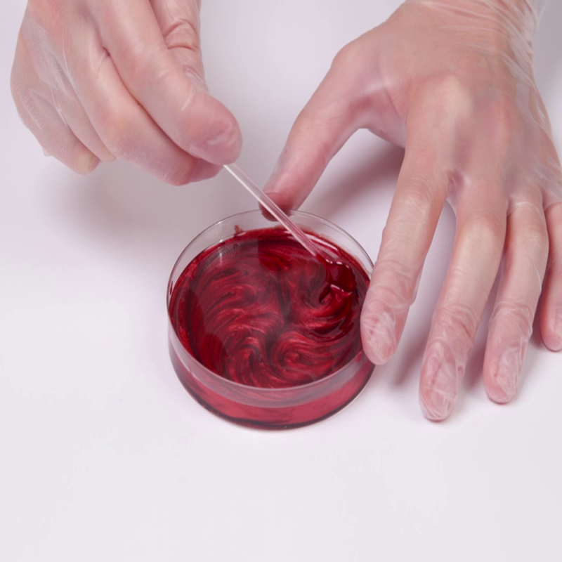 ◦ Izlivanje smole: Nakon što ste ujednačili pigment u smoli, možete izliti smolu u kalup ili na površinu koju želite prekriti. Efekt metalik boje biće izražen čim smola počne da se stvrdnjava. ◦ Višeslojno nanošenje: Ako želite da postignete dublji metalik efekat, možete naneti smolu u više slojeva. Svaki sloj treba da se stvrdne pre nego što nanesete sledeći sloj. U ovom slučaju, metalik pigmenti mogu stvoriti duboki, višeslojni metalik efekat.